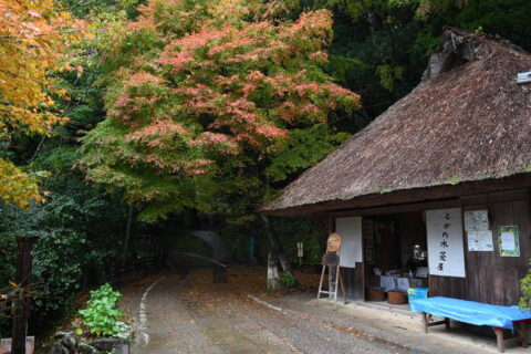 田辺市中辺路町野中にある熊野古道の休憩所「とがの木茶屋」周辺で紅葉が見頃を迎えています。